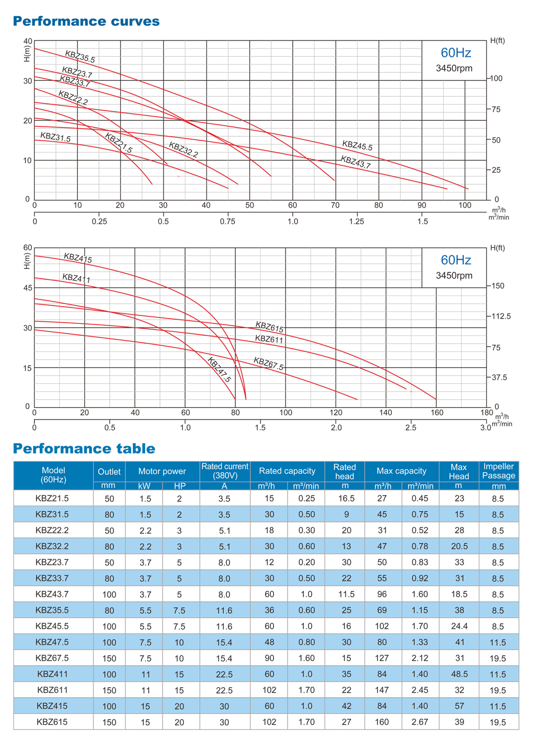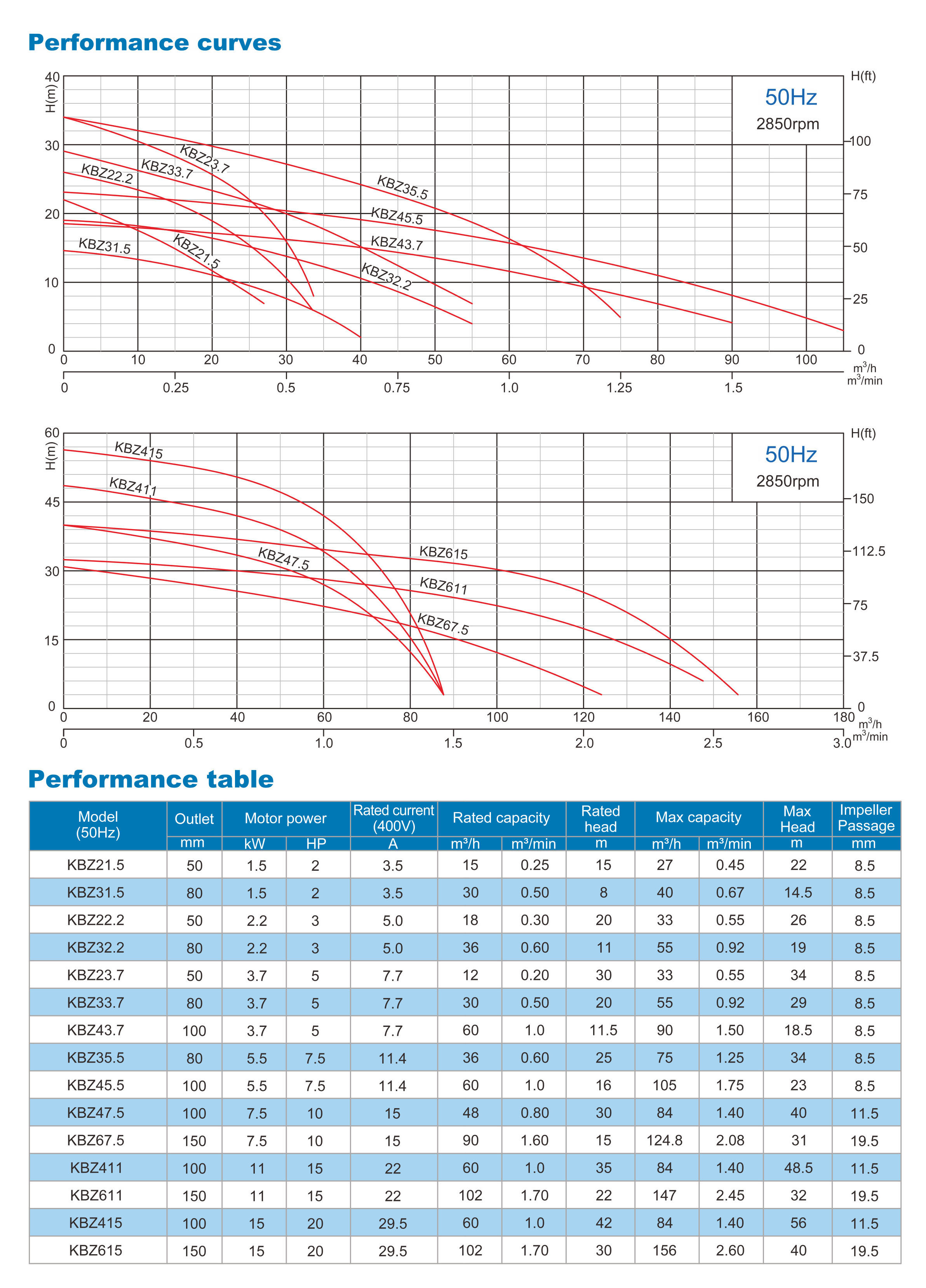 Discharge 50mm(2'') to 150mm(6''), motor 1.5kW (2HP) to 15 kW (20HP).